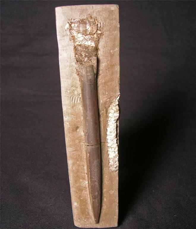 | This classic location is famous for its fantasticly preserved belemnites, some with soft body preservation present. This specimen is of a belemnite guard and part of the phragmacombe preserved on a rectangular slab of Jurassic shale. There is also a partial ammonite preserved . This specimen is from an old collection and is extremely sought after and are very rarely offered for sale. |