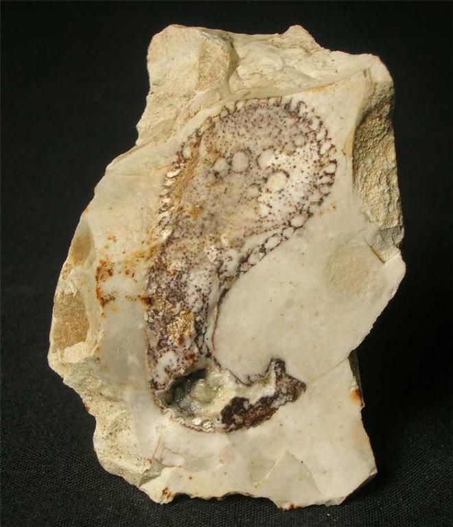 | A very rare cross section of this Cretaceous sponge revealing extremely fine detail within the specimen. This is the first time we have seen a complete sponge including its hold fast in cross section preserved in chert from this locality. One for the collector of rare fossils. |