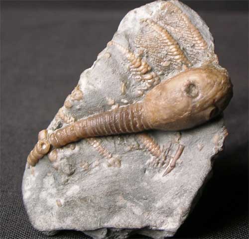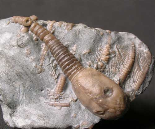 | The Wren's Nest reef limestone deposit is the most famous in the world. Fossils from this site are very highly sought after and this is an exceptionally unusual specimen to come onto the open market. Most fossils that come up for sale are Trilobites, however,this is a stunning and beautifully prepared Cystoid which lies on top of the arms of a Silurian crinoid. The detail of the specimen is exceptional. This is excessively rare and is a unique opportunity to own such a fossil. |