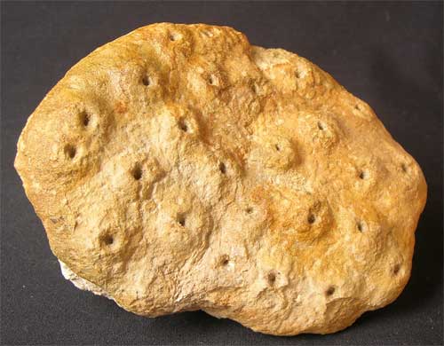 | This juvenile specimen is complete and has fabulous detail throughout. These Oolithic sponges were collected before this quarry was closed some 20 years ago. It is very rare thesedays to see these beautiful sponges for sale on the open market. A must for the serious collector of fossil sponges. Approximately 175 million years old. |