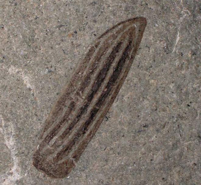 | The fossils from the world famous Jurassic coast of Dorset are very varied and highly sought after. This is a very rare example of a Wing Case from a Jurassic beetle which lived near the coastline 200 million years ago. This specimen woudl make an excellent acquisition for the serious collector. |