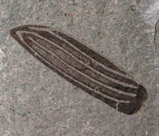 | Preserved in a piece of flatstone is this 200 million year old Beetle wing case. Insect remains in the Lower Jurassic are exceptionally rare and this is a fantastic and very fine example. One not to be missed. |