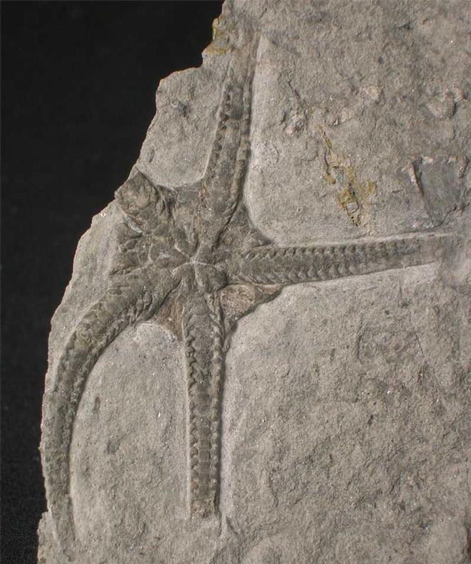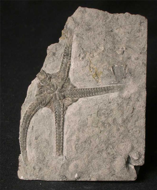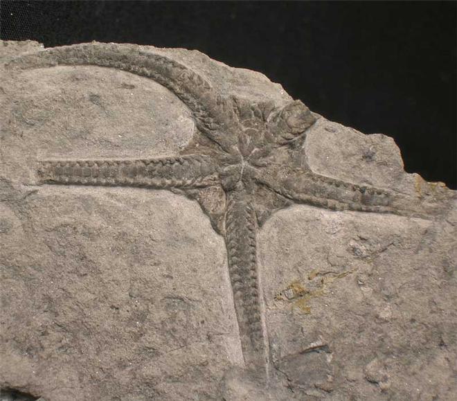 | Preserved on a piece of fossilised sea bed is this lovely example of this rare Brittlestar. The specimen from the Staithes sandstone formation is approximately 185 million years old. Specimens of Brittlestars are relatively rare due to their fragility. A fine and sought after example. |