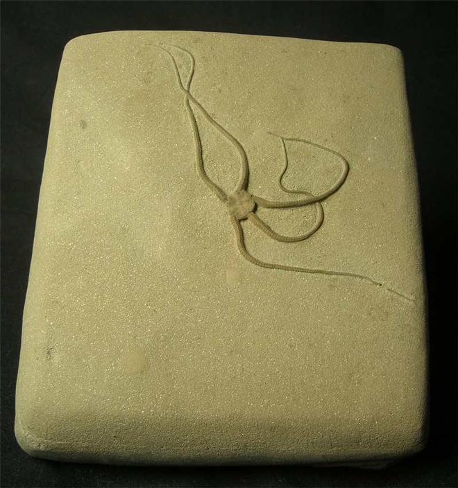 | Yet another quite stunning Brittlestar which is approximately 190 million years old. This particular fossil was discovered in 1997 and has taken many hours to prepare to this magnificent standard. This type of Brittlestar is extremely rare and is defined by its small body and long legs. This world class specimen would grace any world collection.There are larger images in showcase fossils. |