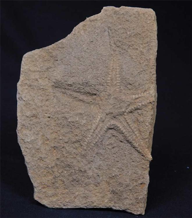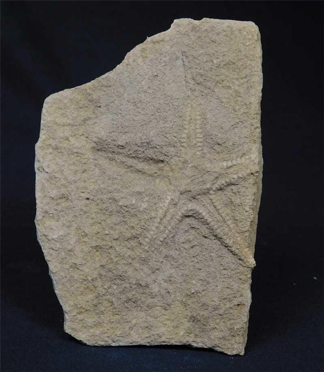 | Well !! what can one say about this?!! This is excessively rare and the only one we have handled in over 80 years joint experience! From the classic Stonesfield Slate is this partial starfish. The detail on the starfish is lovely. A totally unrepeatable fossil, one for the discerning collector. |