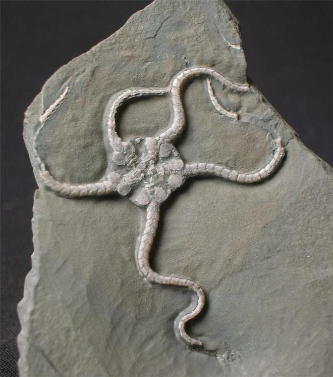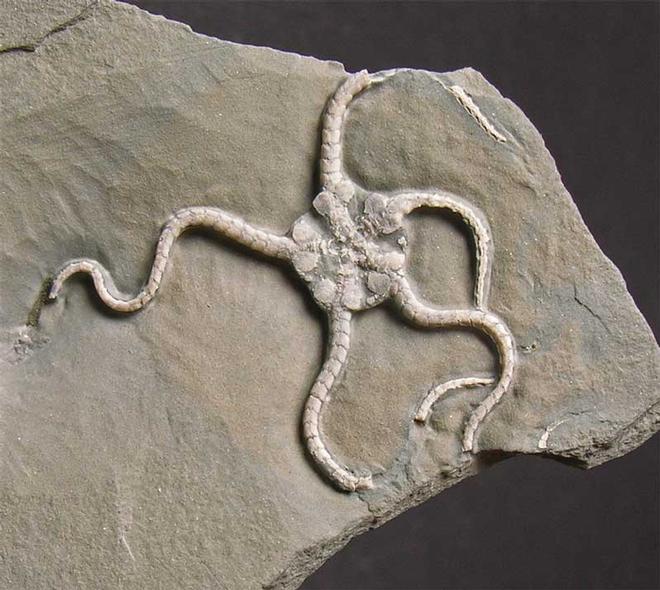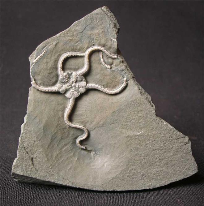 | This is the only virtually complete Brittlestar from the Obtusum Zone of Scunthorpe according to a world leading expert from a major British museum. There is an offical letter to accompany this totally unique Brittlestar from the museum. The Brittlestar was uncovered in a clast which are nodular shaped concretions which have been derived from other sediments. Whilst preparing an Asteroceras which unfortunately was only fragments, this amazing Brittlestar was uncovered and fully prepared by Andy Cowap. This is the cornerstone of any serious collection of fossil Brittlestars and since all the quarries have long since been filled in, means this magnificent specimen can never be repeated. Brittlestars (Class:Ophiuroidea) are named for their five long thin articulated and extremely flexible arms which fragment readily. This is why Brittlestars very rarely fossilise in turbulent conditions such as the preservation suggests at Scunthorpe. Not only is the Brittlestar nearly complete but the detail is fantastic. This is by far the rarest item Fossils Direct has offered on the open market. Approximately 200 million years old. |