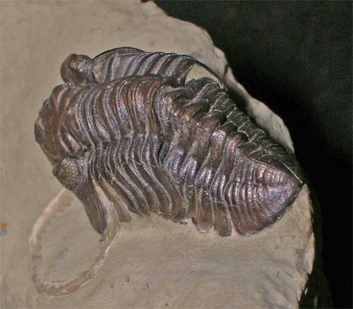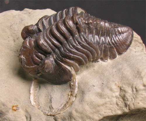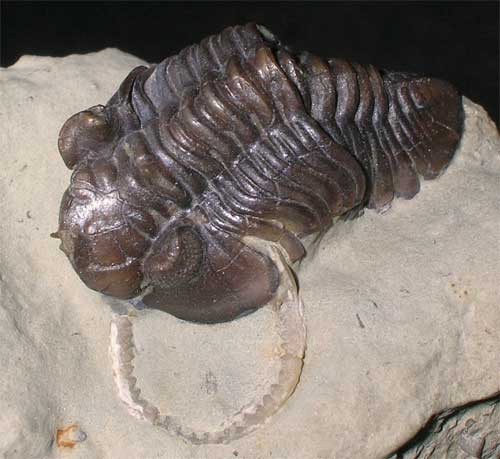 | A stunning three dimensional trilobite from the classic Wenlock series. The specimen has been beautifully prepared out of a hard mudstone and exhibits wonderful eyes. The specimen appears to be leaning on a small bivalve shell. One for the collector of trilobites !! |