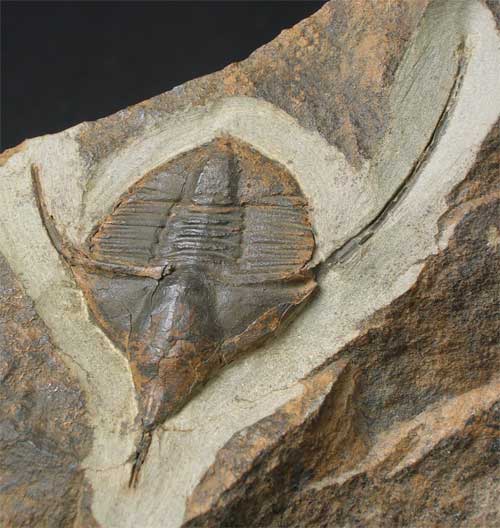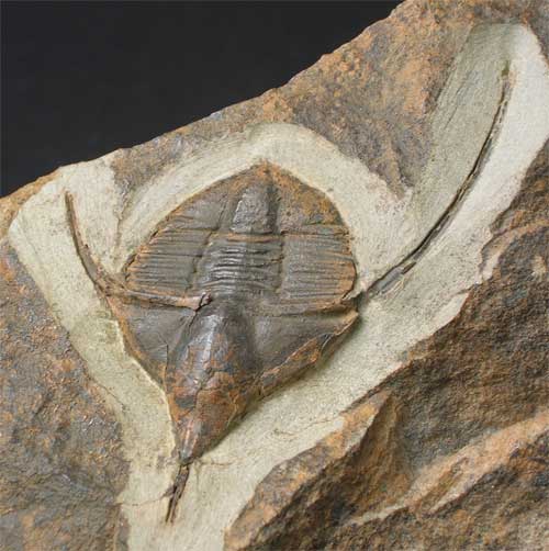 | This is a stunning, almost complete example of this highly sought after, highly collectable trilobite from the classic Starfish beds of Girvan. The specimen has been beautifully prepared and shows a wonderful set of spines. This is a must for any serious collector and is from the late John Page collection. |