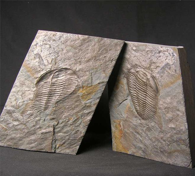 | This is a stunning split pair showing a very well preserved and good sized trilobite. The trilobite has been distorted as is the case in most of these examples. This is a very aesthetic and wonderful complete example. |