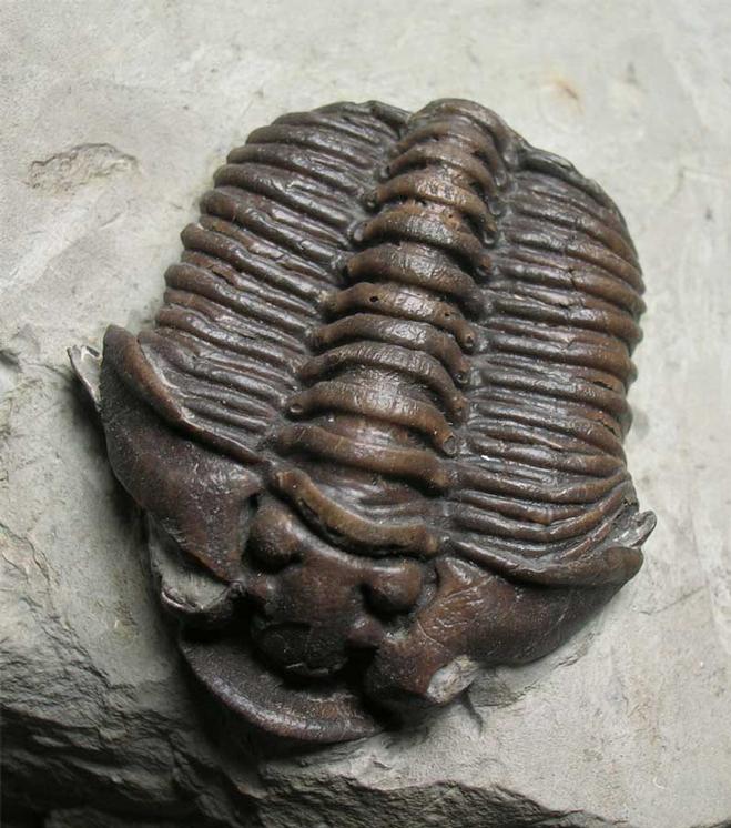 | The Trilobites from the English Wenlock are amongst the most collectable Trilobites in the world. Preserved on hard mudstone is this beautiful three dimensional example. The quality and preservation is very fine and would make a great addition to any collection of Trilobites. |