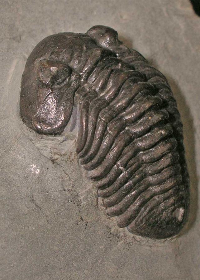 | Preserved on a hardened block of Wenlock limestone is this beautiful and very well preserved Trilobite. The quality of the Trilobite throughout is very fine and this would make a great drawer specimen. |