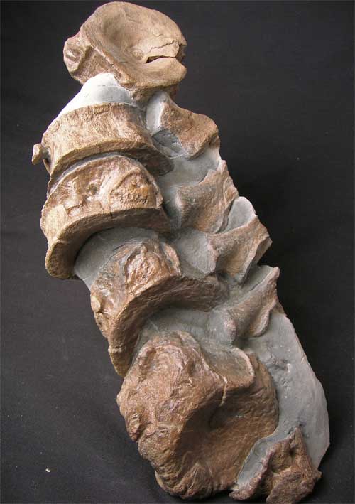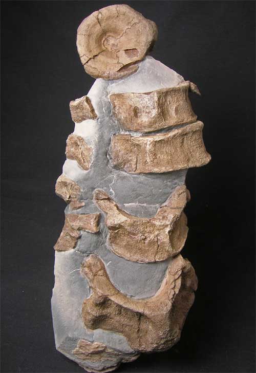 | Developed out of a hard Oxford Clay nodule are a string of large vertebrae. The vertebrae also have attached the neural arches. Examples as good as this are seldom available for sale. This is a wonderful example with very high definition. A piece not to be missed for the ardent fossil collector. |