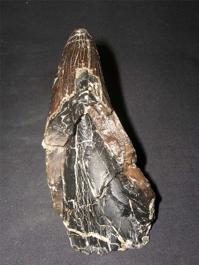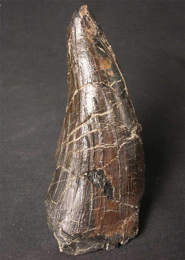 | Pliosaur teeth from the Oxford Clay of the UK are seldom ever seen for sale as they are so rare and sought after. Only on the odd occasion does one ever come up for sale on the open market and we at Fossils Direct are proud to offer such a fine and rare example. Pliosaurs were the T Rex of the Jurassic seas, and grow upto 15 meters in length. This massive 5" tooth has a lovely patina and colour, as well as detail. This specimen is not only for the collector of teeth but all fine collections would benefit from a piece such as this !! Larger images can be seen in "showcase fossils" |