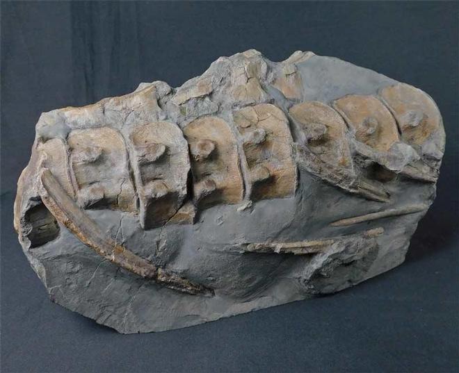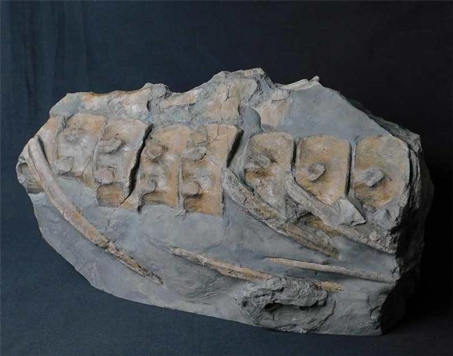 | A wonderful and large, highly displayable specimen from this classic locality. The specimen consists of 8 vertebrae, some with the neural arches attached and a few sweeping ribs across the block. The specimen has been repaired, however this does not detract from the overall aesthetics. The specimen has a cut base for ease of display and would make a wonderful centrepiece for any collection or indeed a great conversation piece in the home or office space. Larger images can be seen in "Showcase Fossils". |